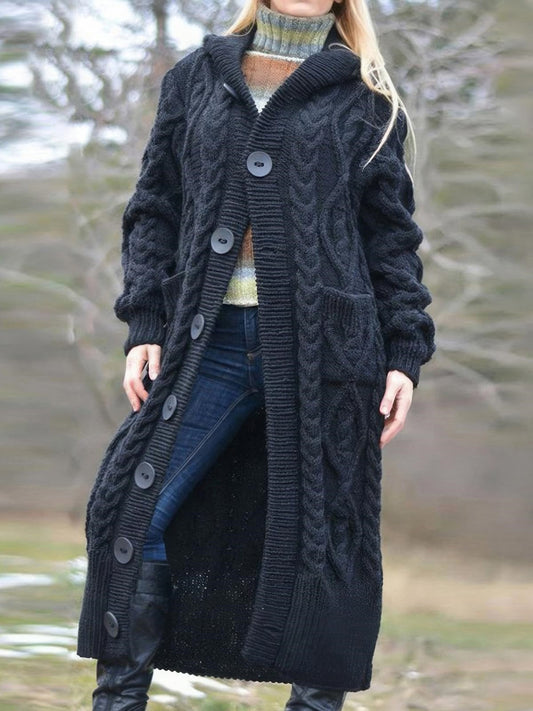 Anna – Grober Zopfmuster-Longline-Cardigan mit Kapuze