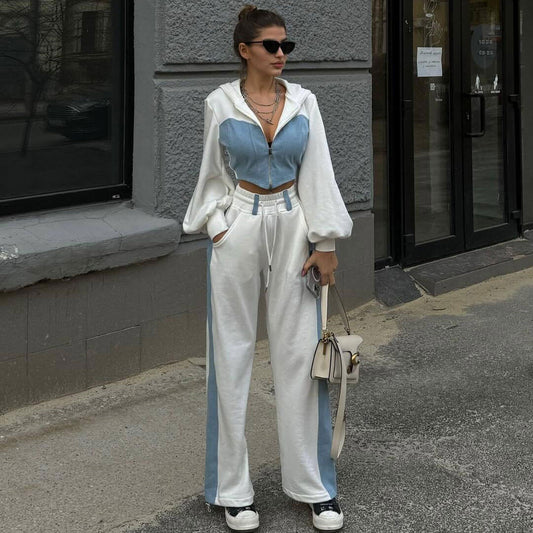 Zephina – Kurzes Patchwork-Hoodie- und Jogger-Set