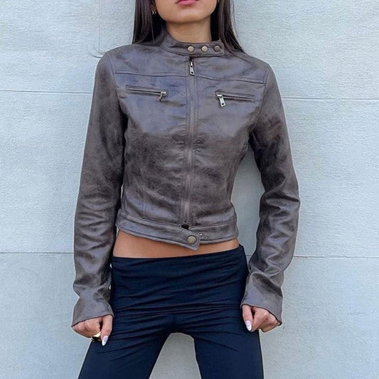 Zarela – Kurze Jacke aus Wildlederimitat mit Kragen