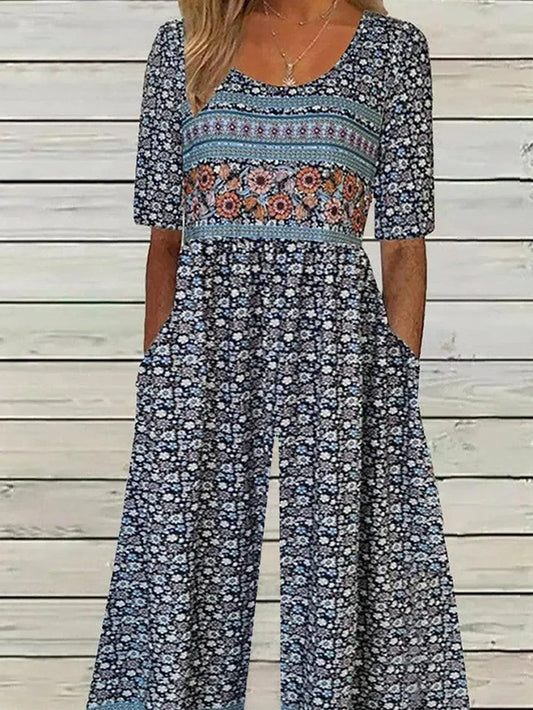 Flavia – Lässiger Jumpsuit mit Blumenmuster und kurzen Ärmeln