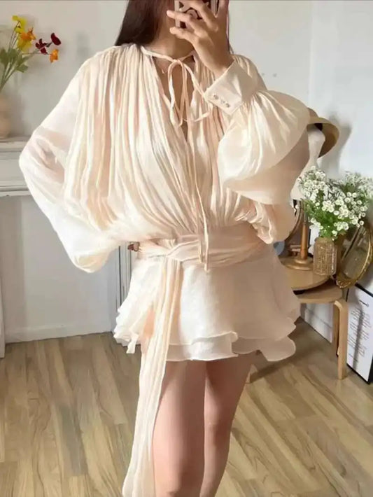 Rosavine – Mini-Kleid mit V-Ausschnitt und Schnürdetail