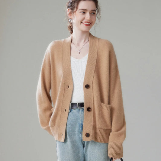 Erika | Damen Strickjacke – Schicker Einfarbiger Cardigan mit V-Ausschnitt