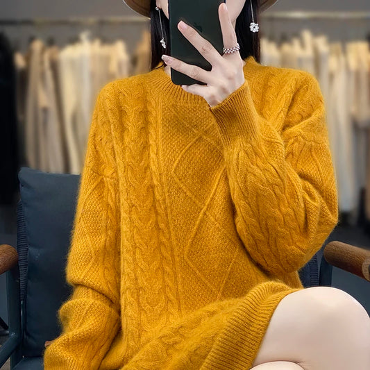 Anneliese | Dick Gestricktes Warmes Nerz-Pulloverkleid für Damen