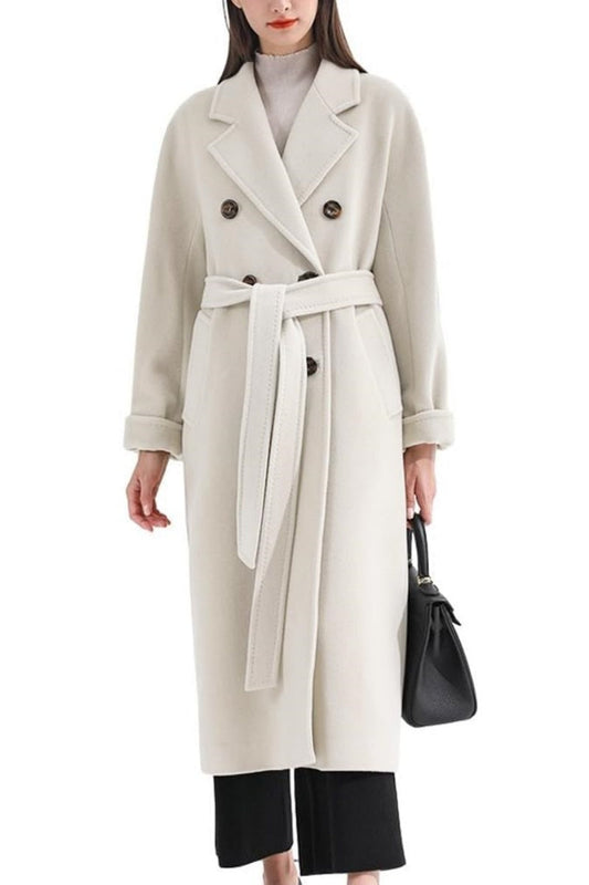 Greta – Langer, zweireihiger Wollmantel mit Gürtel