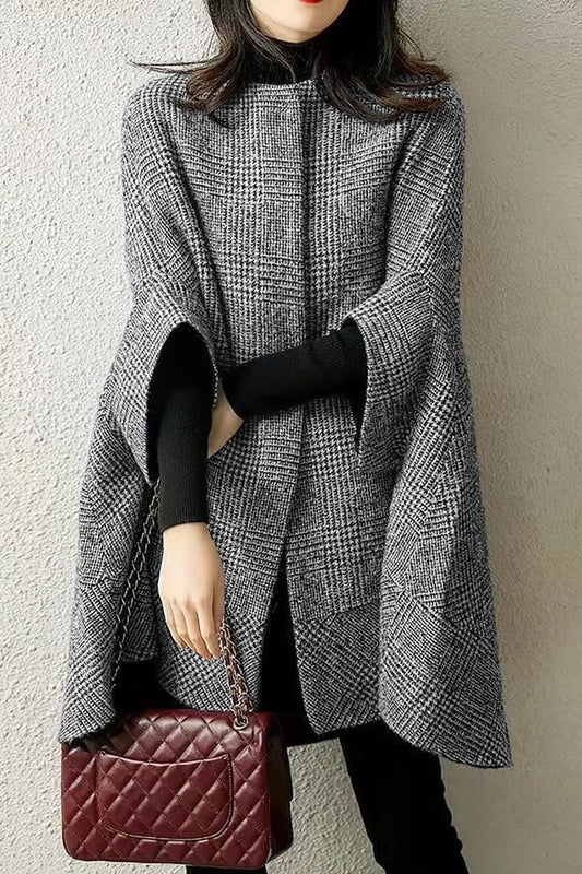 Beday – Winter-Cape-Mantel aus karierter Wollmischung