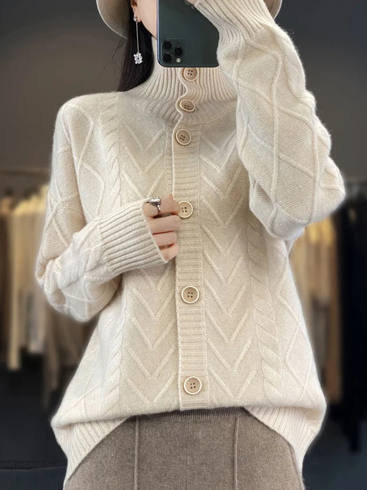 Liona – Strickjacke mit Zopfmuster und Knopfleiste
