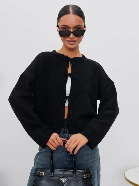 Olivienne – Strickpullover mit Schnürung und Rundhalsausschnitt
